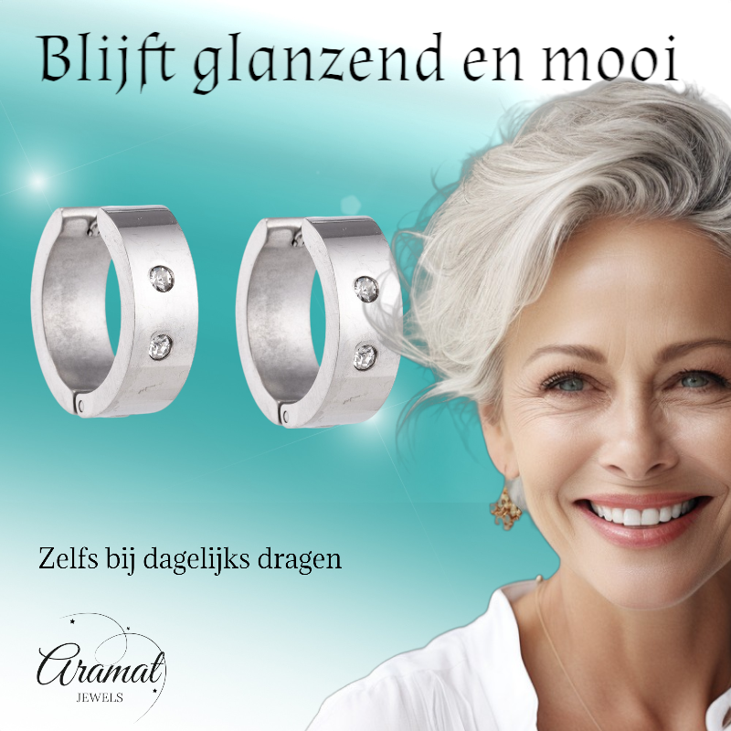 Vous cherchez des créoles élégantes et résistantes qui se démarquent ? Ces larges créoles argentées de 13 x 7 mm sont ornées de deux cristaux étincelants et se ferment en toute sécurité grâce à une charnière pratique. Parfaites pour celles qui aiment allier confort et style. 💎
