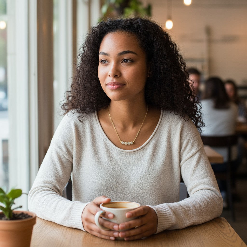Portez ce collier avec un chemisier, un t-shirt basique ou une petite robe noire. Associez-le à des bijoux de la collection dorée pour une tenue subtile et chic 🌟.