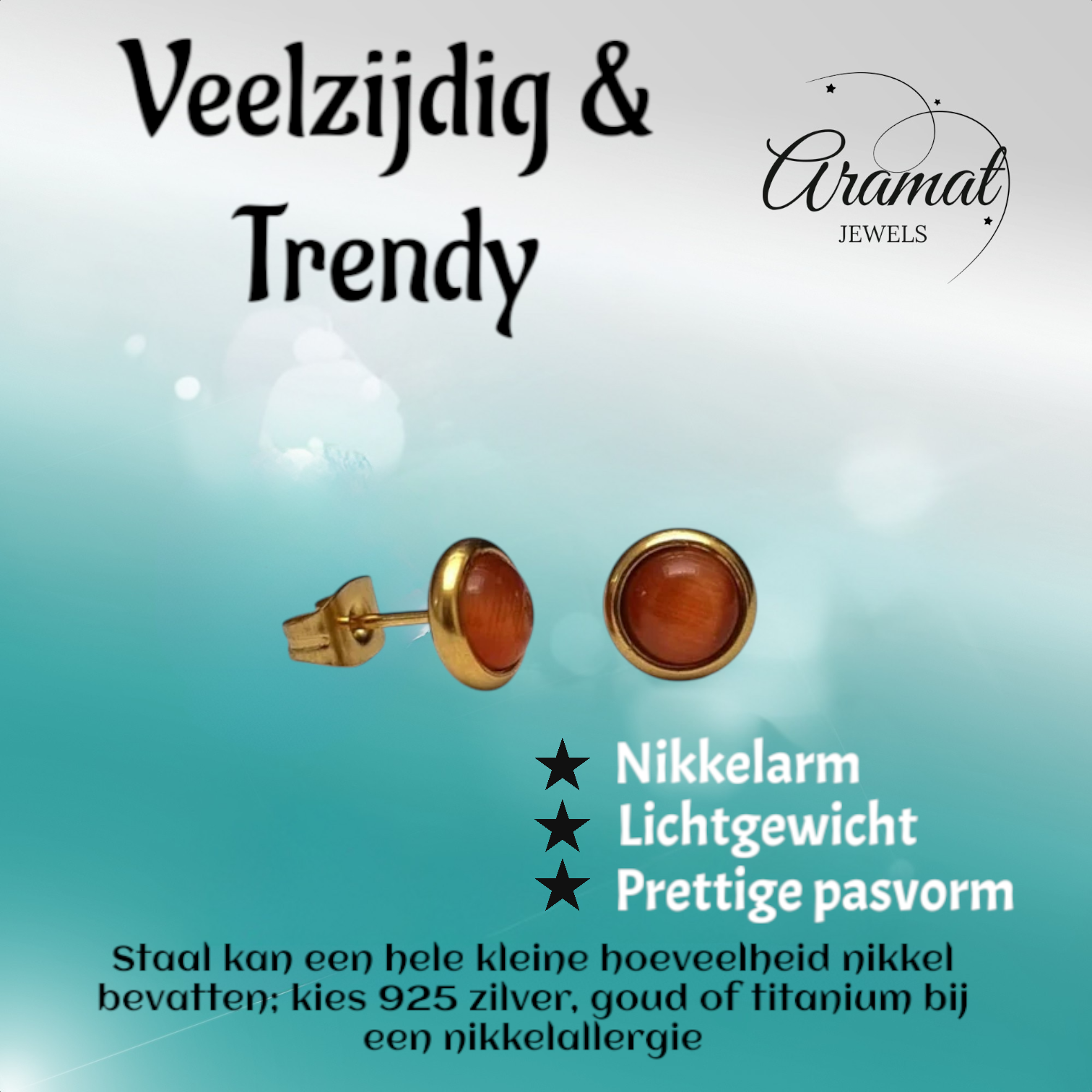 Boucles d'oreilles œil de chat 8 mm – Couleur or rouge/orange