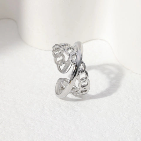 Open Ring Gekruist Motief: Glad en Schakel (RVS Verstelbaar)
