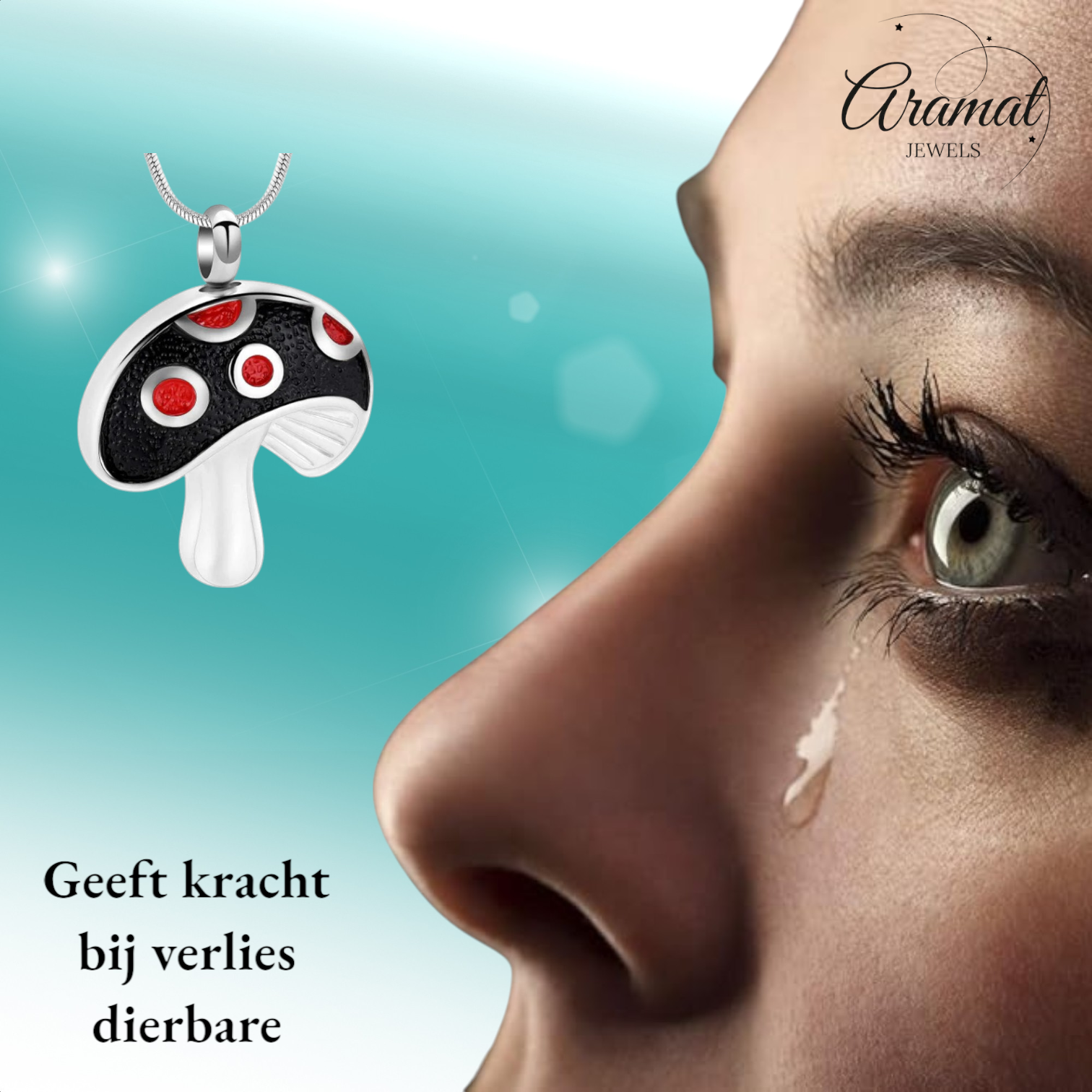 Envie de conserver le souvenir d'un être cher dans un bijou qui vous ressemble vraiment ? Ce pendentif funéraire en acier, en forme de champignon, est unique. L'alliance de l'acier inoxydable argenté et des points d'émail noir et rouge vif lui confère un aspect joyeux et naturel, tout en symbolisant la croissance, la protection et la beauté de la nature . 🍄