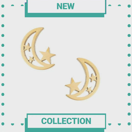 Boucles d'oreilles en acier inoxydable Lune et Étoile 10 mm - Puces d'oreilles célestes