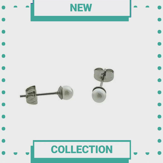 Superbes boucles d'oreilles en acier avec perles blanches - 5 mm