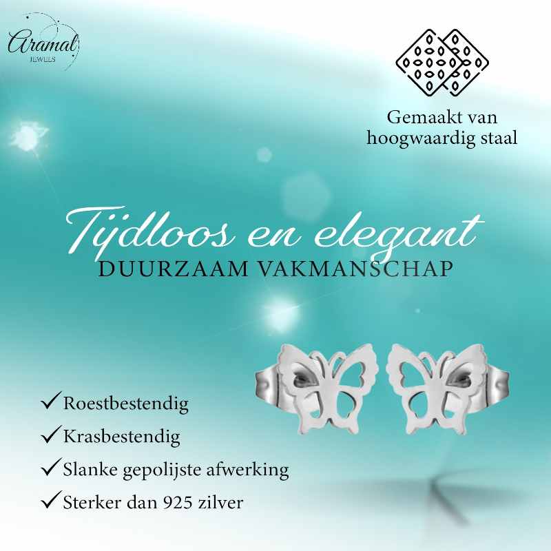 Envie de rafraîchir instantanément votre look avec une touche subtile et élégante ? Découvrez les boucles d’oreilles papillon en acier argenté d’Aramat Jewels. Ces puces d’ oreilles raffinées, ornées de trois papillons ajourés, vous offrent un look frais et joyeux, que ce soit pour aller à l’école, au travail ou en soirée. 🦋✨