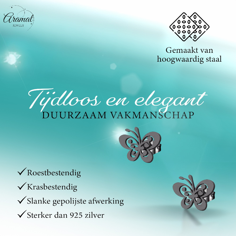 Apportez une touche tendance à votre style avec ces boucles d'oreilles papillon en acier noir d'Aramat Jewels. Le design ajouré des ailes fait de ces puces d' oreilles un bijou très apprécié des femmes, des adolescentes et des jeunes filles. Parfaites pour l'école, le travail, une soirée ou tout simplement pour se démarquer au quotidien 🖤.