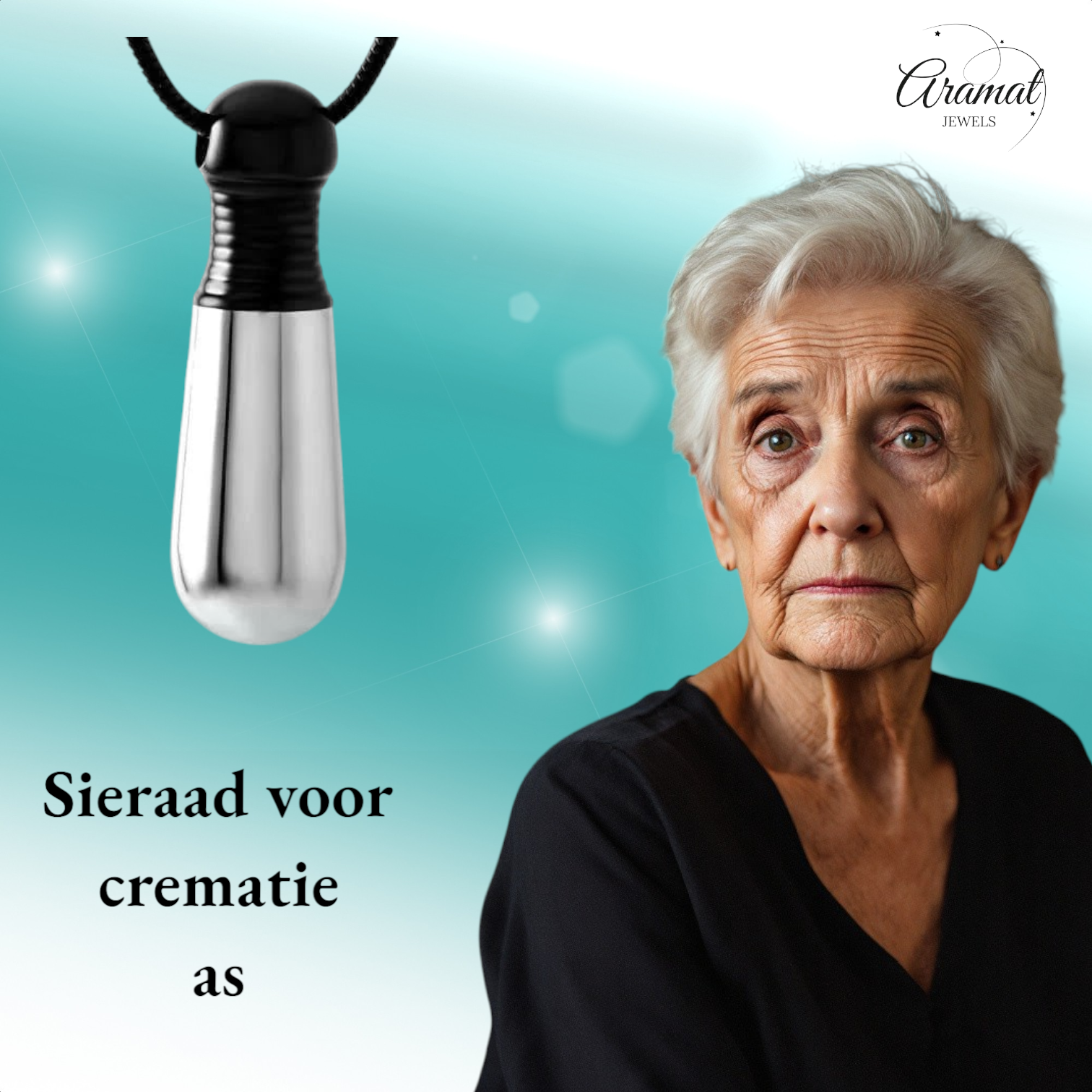 Deze ashanger is speciaal gemaakt voor het bewaren van een klein beetje as. Door het stevige schroefsysteem blijft alles veilig opgeborgen, zonder dat anderen direct zien wat je bij je draagt. Alleen as past in deze buis, andere aandenken zijn niet geschikt. Zo draag je op een respectvolle manier een tastbare herinnering bij je, waar je ook gaat.