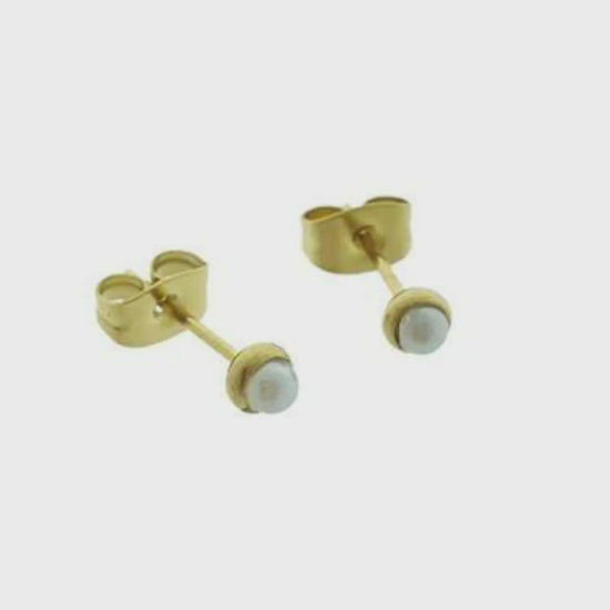 Voeg wat glamoureus goud toe aan je look toe met deze prachtige goudkleurige pareloorbellen. Elk paar is met de hand vervaardigd met oorstekers van staal en onderliggende synthetische parels van 4 mm. De onderliggende witte parels hebben een tijdloze elegantie en zijn een perfecte aanvulling op elke outfit.
