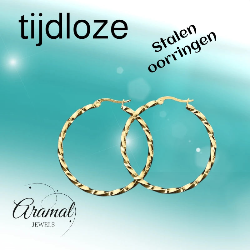 Bent u op zoek naar oorbellen die net even meer opvallen? Deze prachtige goudkleurige swirl hoepeloorbellen van Aramat Jewels® zijn de perfecte keuze. Door de subtiele draai in het ontwerp vangen deze oorbellen het licht op een unieke manier. Met een diameter van 35 mm zijn dit echte statement oorbellen die elke outfit direct een luxe uitstraling geven.