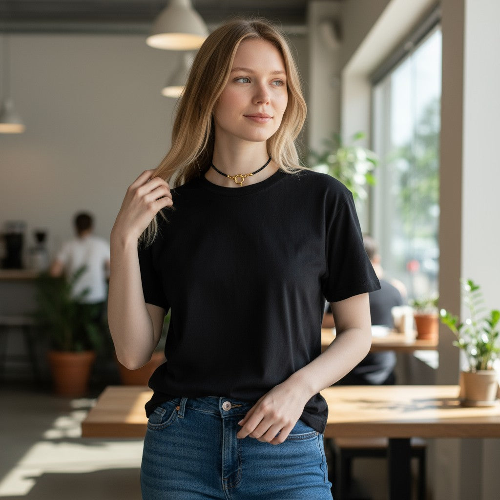 Deze fijne ketting tilt elke look op: slank, glanzend en versierd met zwarte kraaltjes. De warme goudkleurige finish maakt hem meteen bijzonder, terwijl de voor-sluiting aan de voorkant uitnodigt om jouw lievelingsbedels te wisselen ✨🖤.