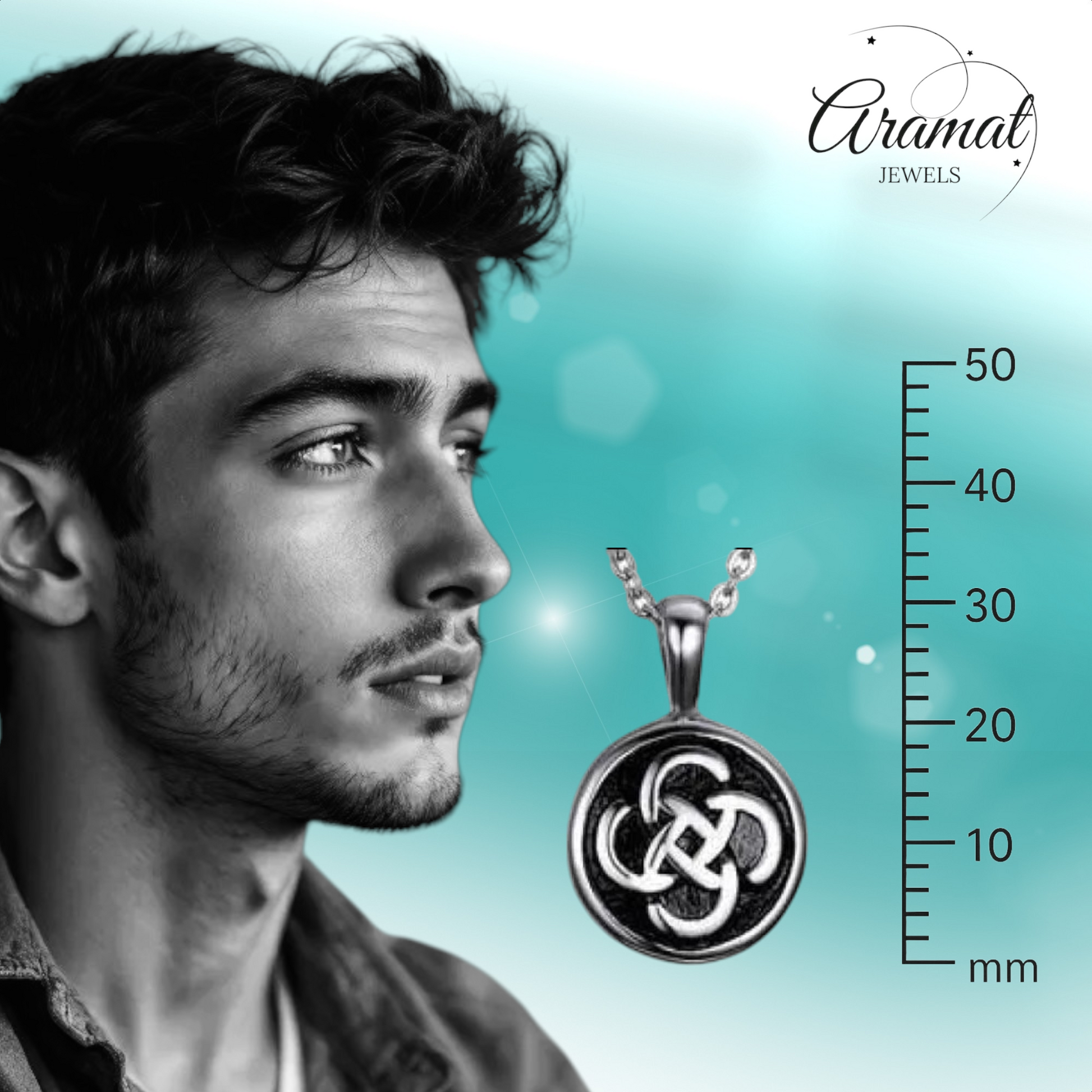 Bestel deze Keltische ronde as-hanger met zwarte knoop en geef je dierbare herinnering een veilige, stijlvolle plek. Luxe verpakt en snel leverbaar bij Aramat Jewels.
