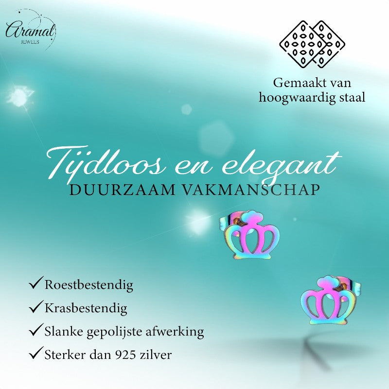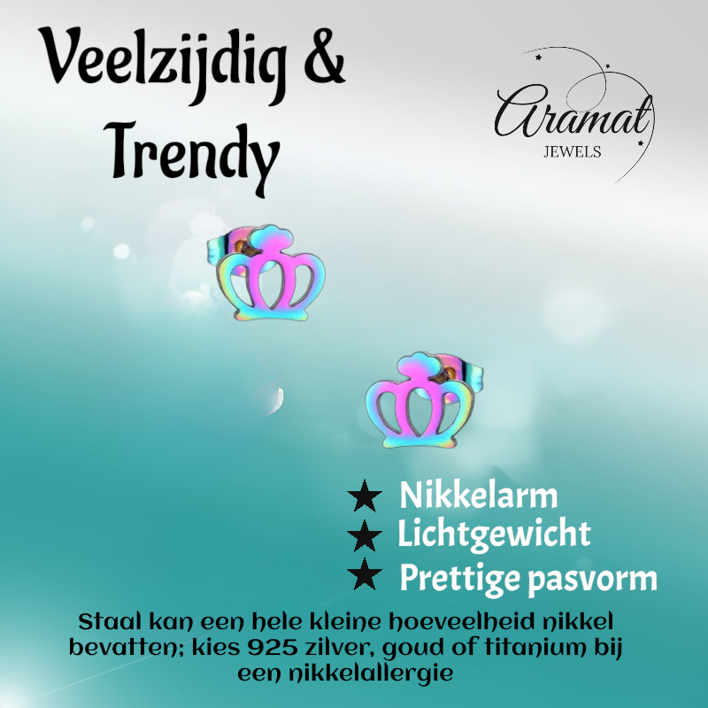 👑 Betoverende Kroontjes Oorstekers in Multikleur (9mm)