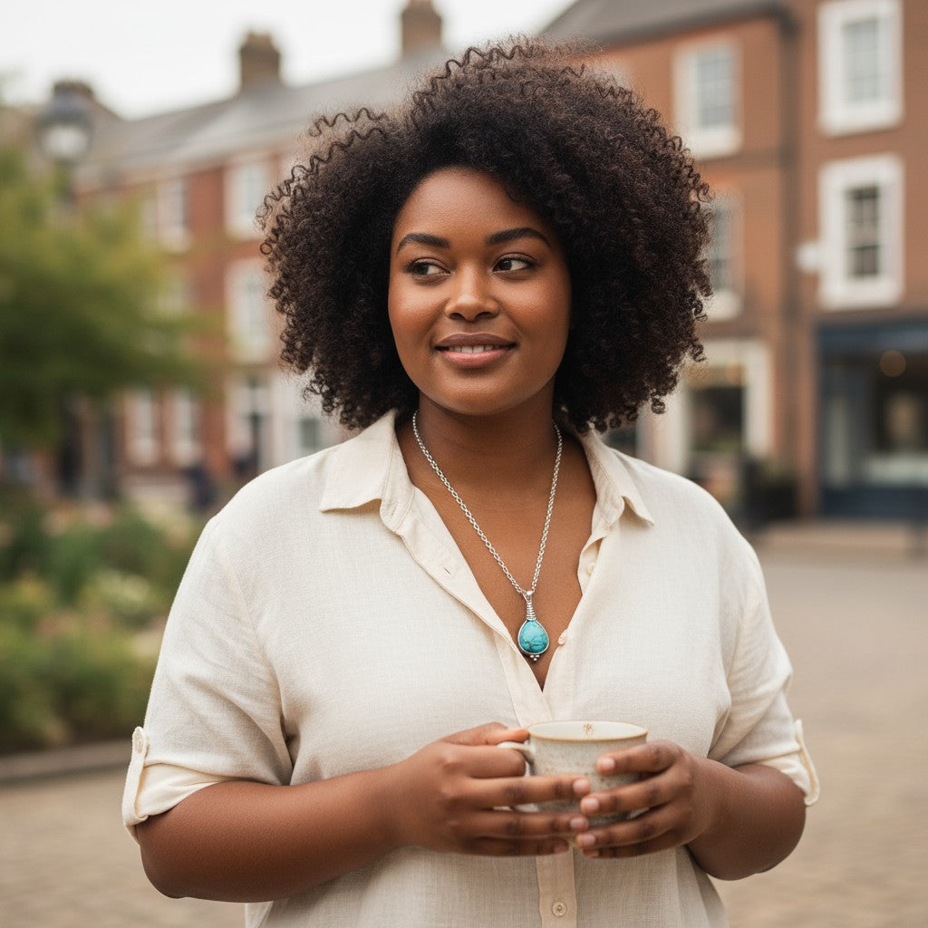 Lichtblauwe Boho Ketting met Druppelvormige Steen