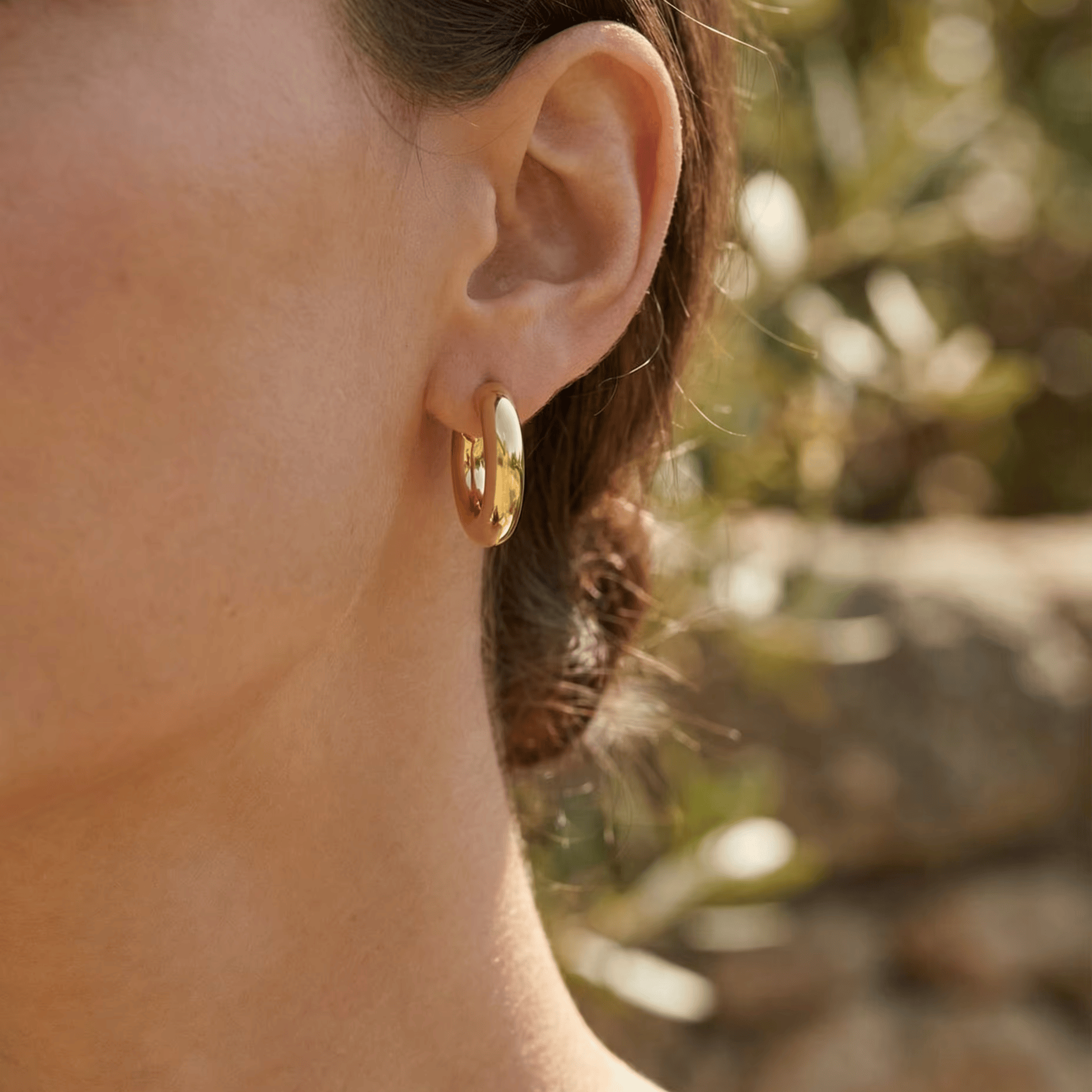 Bij Aramat Jewels streven we naar een duurzame wereld door onnodige retouren te beperken. Deze oorbellen hebben een afmeting van ca. 25x8mm. Omdat productfoto's vaak zijn vergroot om de glans en de massieve vorm te tonen, raden we aan om de breedte en diameter even na te meten met een liniaal. Zo weet je zeker dat deze minimalistische statement hoops perfect bij je passen en besparen we samen op de CO2-uitstoot van transport.