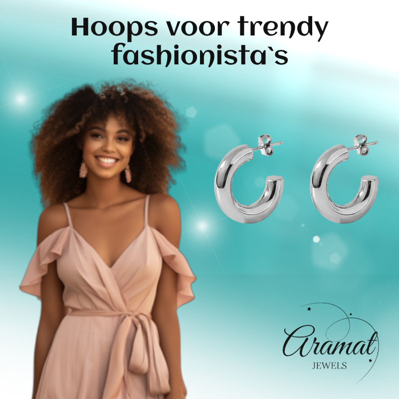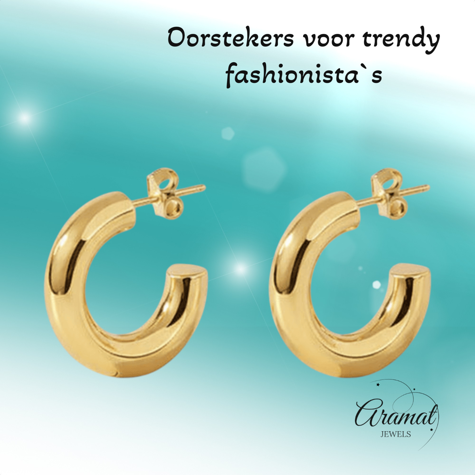 Geef je outfit een krachtige en minimalistische uitstraling met deze massieve halve oorringen van Aramat Jewels. Deze oorstekers hebben een tijdloos, glad design en een robuuste breedte van 8mm, wat zorgt voor een moderne en luxe "chunky" look. Met een diameter van ca. 25mm zijn deze oorbellen het ideale sieraad voor de vrouw die houdt van een strak statement dat moeiteloos combineert met elke outfit.
