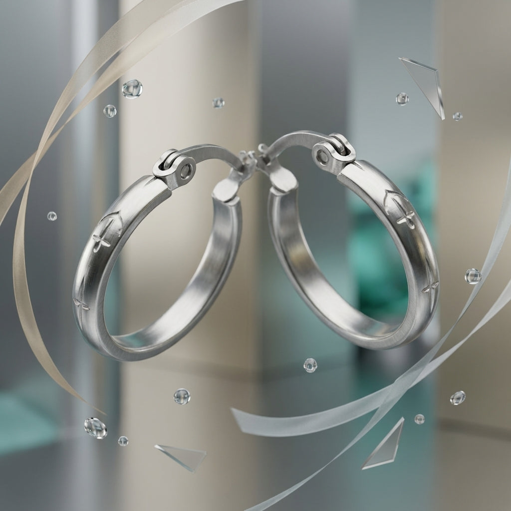 Deze oorringen zijn vervaardigd uit hoogwaardig roestvrij staal (RVS). Dit materiaal staat bekend om zijn enorme sterkte en het feit dat het volledig waterproof is en niet verkleurt. 💧 In tegenstelling tot zilveren sieraden, behoudt dit staal zijn heldere zilverkleurige glans zonder dat je het hoeft te poetsen. Omdat er geen stenen of lijm zijn gebruikt, zijn deze oorbellen uitermate geschikt voor een actieve lifestyle; draag ze gerust tijdens het sporten of douchen zonder zorgen over kwaliteitsverlies.