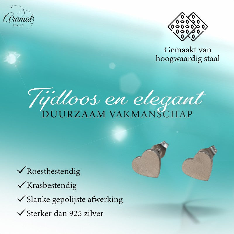 RVS is duurzaam, verkleurt niet en is waterbestendig ๐ก๏ธ. Deze hartjes oorstekers gaan lang mee en behouden hun glans. Meer weten over samenstellingen en verzorging? Check de uitleg over metaallegeringen en vind handige tips in de sieradenwiki.