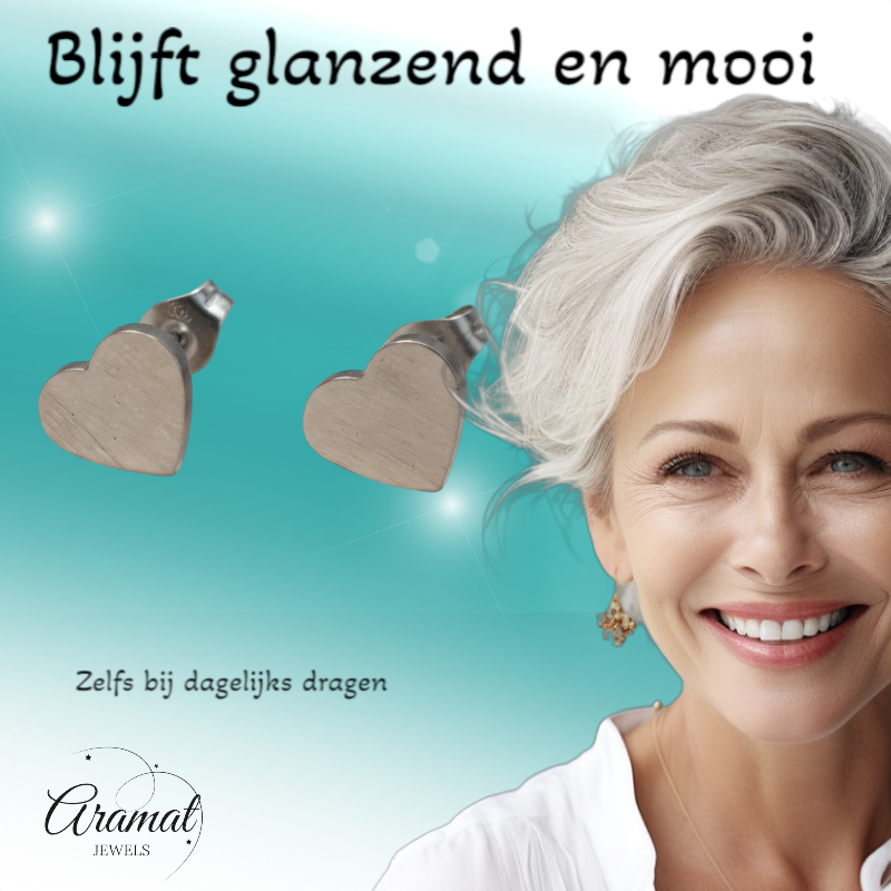 Voeg deze zilverkleurige hartjes oorstekers toe aan je sieradencollectie en straal tijdloze liefde ๐. Bestel nu bij Aramat Jewels, perfect als cadeau!