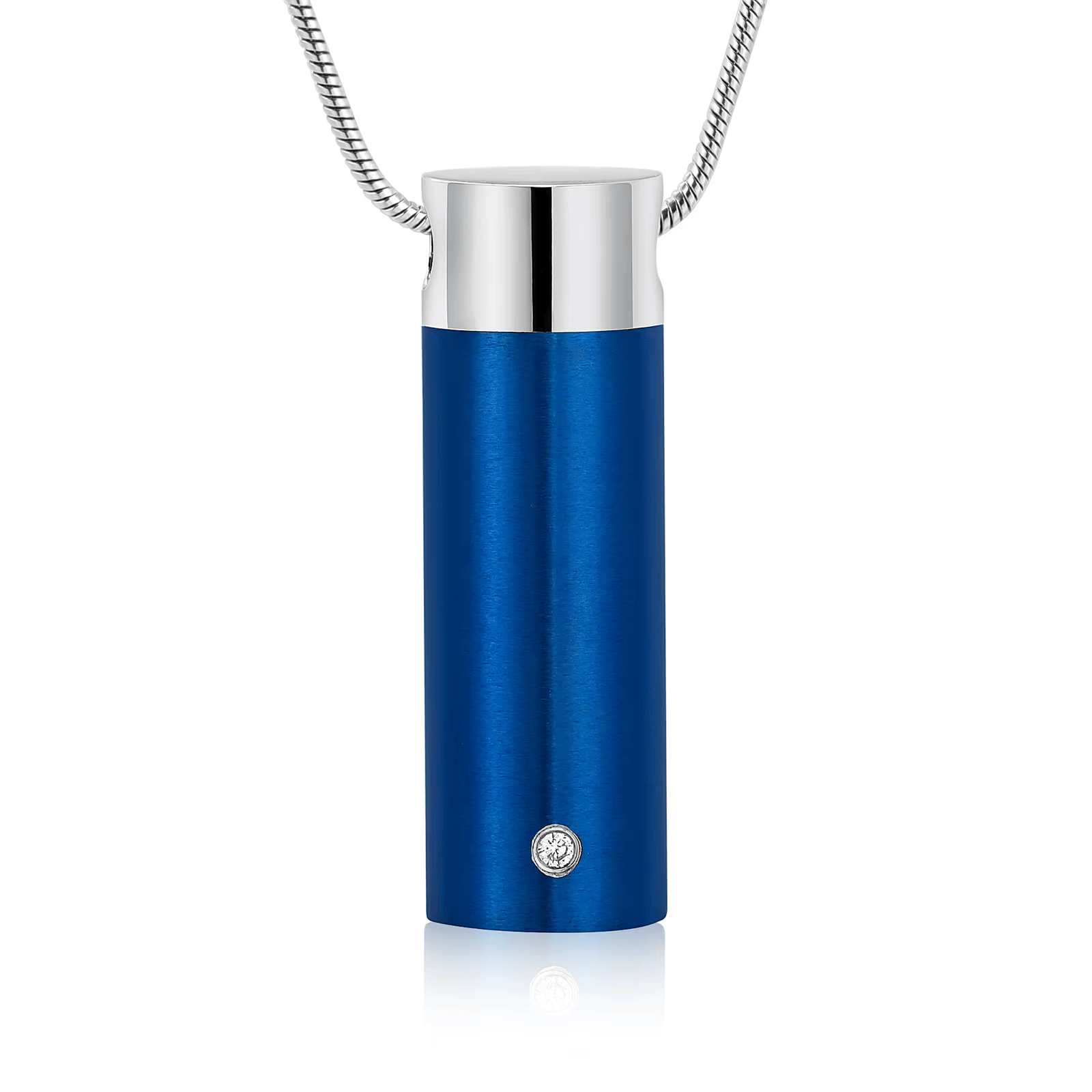 Wil je iemand die je mist altijd bij je dragen? Deze blauwe stalen ashanger buis is een waardevol herinneringssieraad dat liefde, verbondenheid en troost uitstraalt. De cilindervorm staat voor oneindigheid en de blauwe kleur symboliseert hoop, rust en blijvende herinnering. Een subtiel steentje zorgt voor een sprankelende, luxe uitstraling. Dit crematiehanger biedt ruimte voor een beetje as of een persoonlijk aandenken. 💙