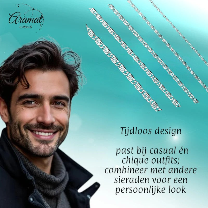 Ontdek de prachtige Stalen Griekse Halsketting Gedraaid van Aramat Jewels®. Deze verfijnde halsketting, gemaakt van hoogwaardig RVS-staal, heeft een uniek Grieks gedraaid schakelontwerp en is verkrijgbaar in verschillende lengtes en breedtes. Met zijn zilverkleurige afwerking straalt het zowel elegantie als duurzaamheid uit. Geschikt voor zowel vrouwen als mannen, is deze halsketting het perfecte sieraad om je outfit compleet te maken. Maar wacht niet te lang, want op = op!