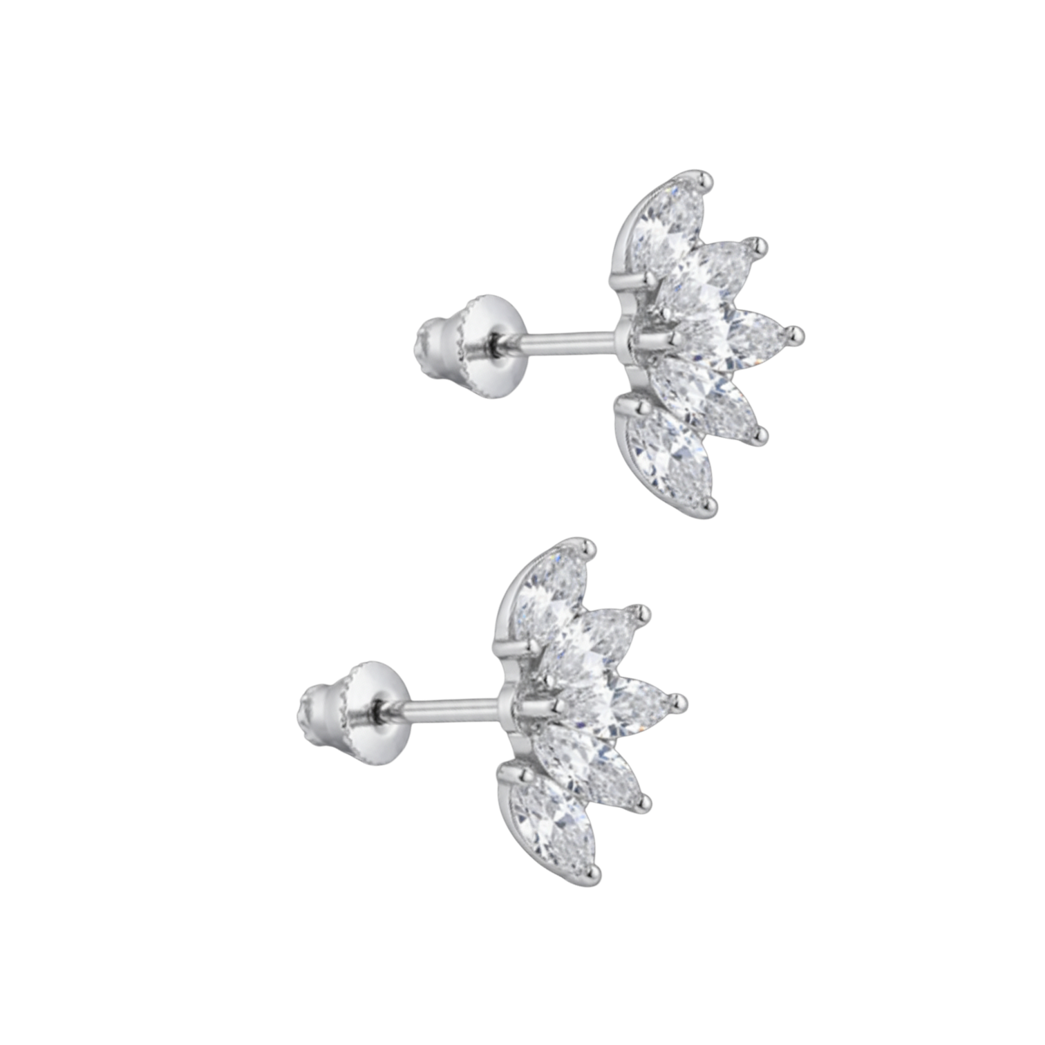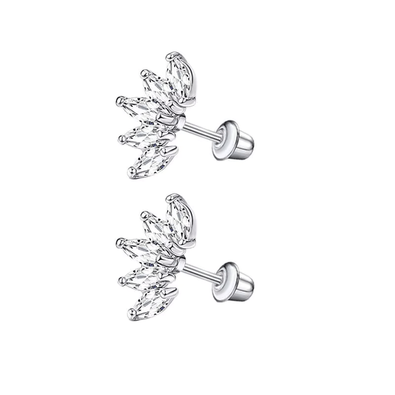 Zilverkleurige Zirkonia Waaier Oorstekers - Veilige Schroefsluiting