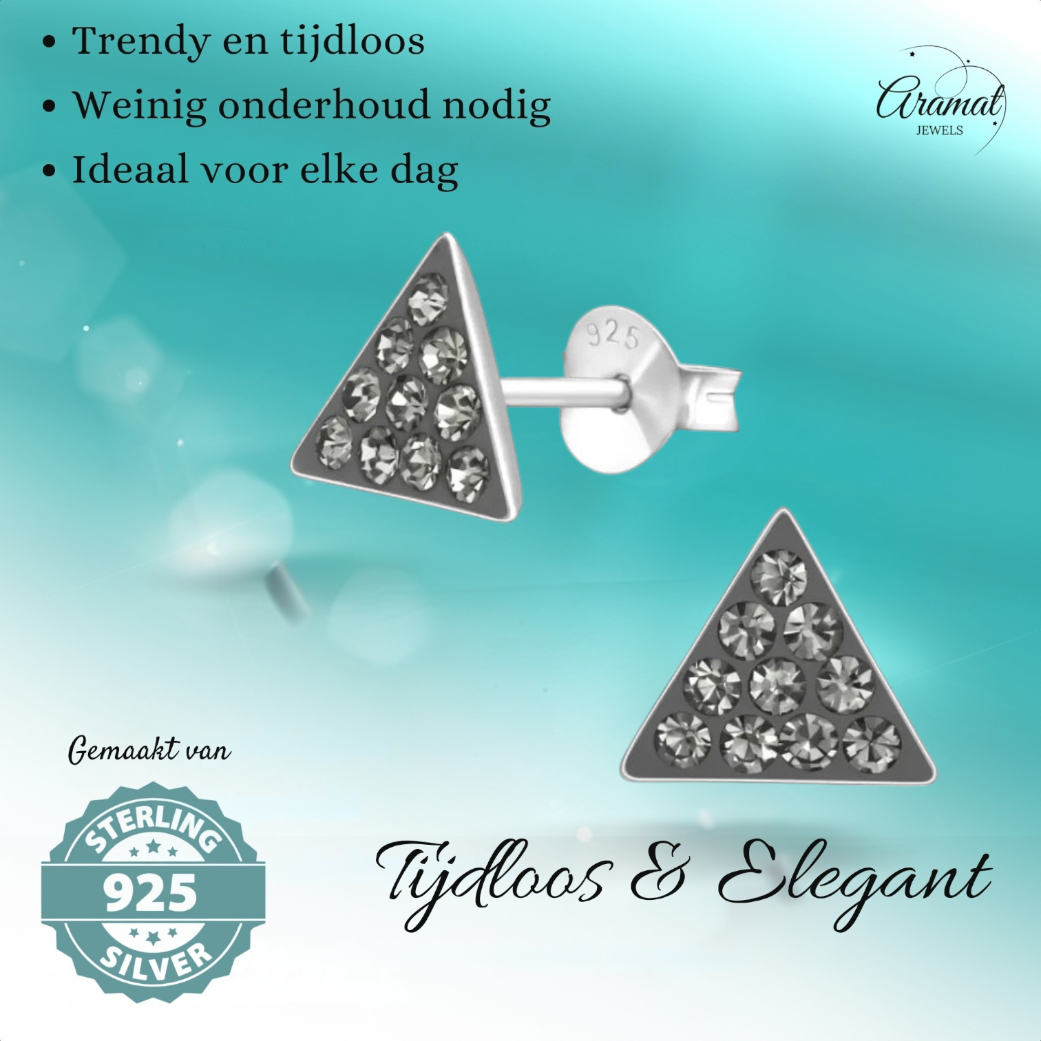 Zilveren Kristallen Oorbellen driehoek Black Diamond