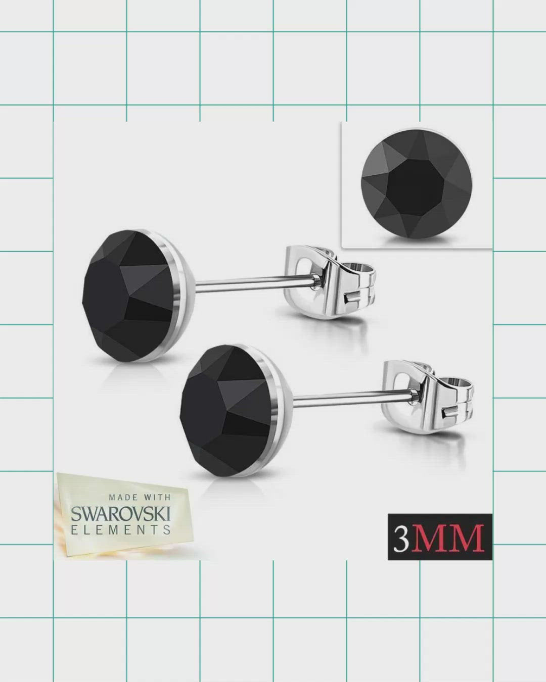 Stalen Oorbellen Kristal Rond - 3mm - Zwarte Kristal ✨